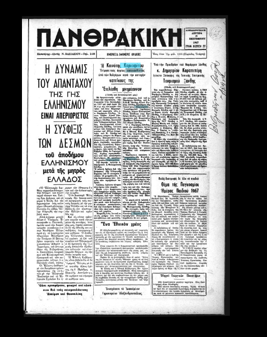 Δημοσίευμα 26 Σεπτεμβρίου 1967 ΠΑΝΘΡΑΚΙΚΗ Φ.1105