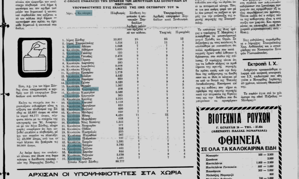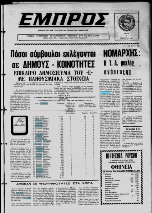 Δημοσίευμα στο Εμπρός Τρίτη 19 Αυγούστου, 1986, Φ 2606 για τις δημοτικές εκλογές.