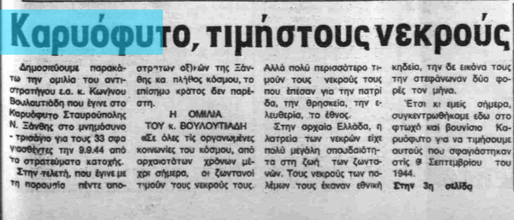 78 χρόνια έπειτα από τη Σφαγή στο Άνω Καρυόφυτο