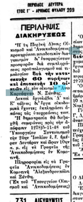 Όπως φαίνεται από το δημοσίευμα η αρμόδια υπηρεσία για κάτι τέτοιο ήταν η υπηρεσία Ανοικοδομήσεως η οποία έδρευε στην Κομοτηνή.
