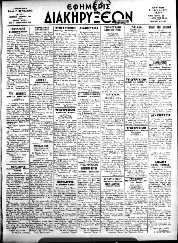 ΕΦΗΜΕΡΙΣ ΔΙΑΚΥΡΗΞΕΩΝ 09.07.1950, ΦΥΛΛΟ 209, ΒΙΒΛΙΟΘΗΚΗ ΤΗΣ ΒΟΥΛΗΣ.