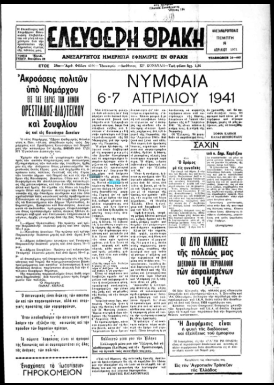Ετσί σε δημοσίευμα της εφημερίδας ΕΛΕΥΘΕΡΗ ΘΡΑΚΗ, 8 Απριλίου του 1971, Φ4330 βρίσκουμε τηλεγράφημα του προέδρου της Κοινότητας Καρυοφύτου Γεωργίου Βερβερίδη, μαζί με τον πρόεδρο Δαφνώνος Κοσμά Σιδηρόπουλο και Νεοχωρίου Κυριάκου Μουχτούρη, προς την Εθνική Κυβέρνηση και τον Νομάρχη Ξάνθης, Γεώργιο Κυριακάκο, με το οποίο εκφράζουν ευχαριστίες , αισθήματα ευγνωμοσύνης και αγάπης εκ μέρους των κατοίκων, για την διάθεση ζωοτροφών από την Νομαρχία. Παράλληλα δηλώνουν πως η πίστη τους στην επανάσταση, θα παραμείνει ακλόνητη. Δύσκολες εποχές για όλους.