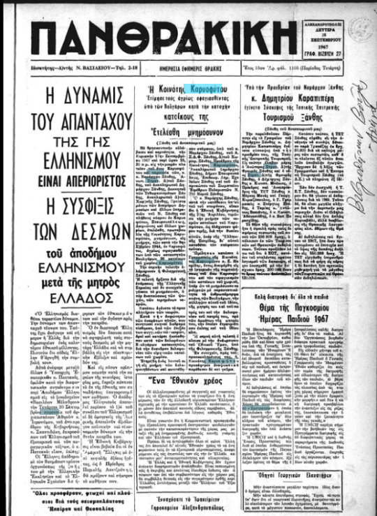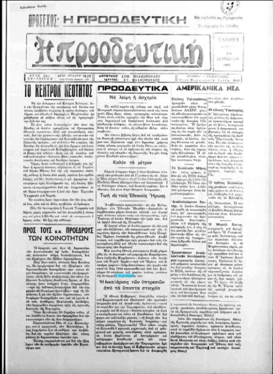 Το δημοσίευμα στην ΠΡΟΟΔΕΥΤΙΚΗ , τη Δευτέρα 18 Σεπτεμβρίου 1967 αναφέρει μεταξύ άλλων