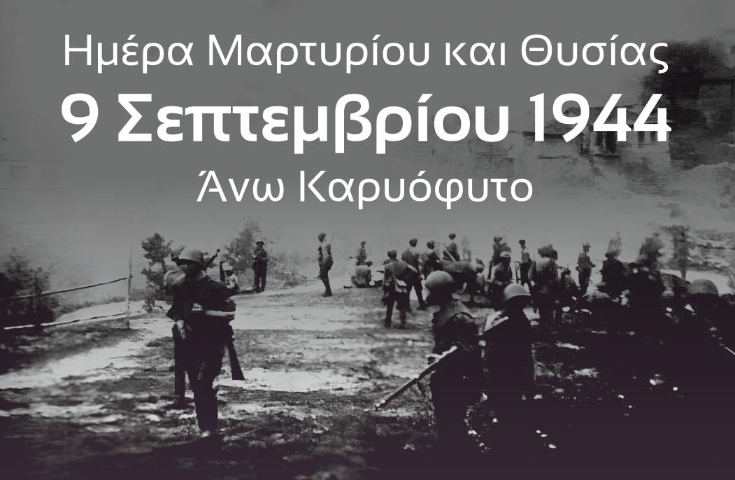 Μαθητές, εκπαιδευτικοί, εκπρόσωποι της τοπικής αυτοδιοίκησης και μέλη του Πολιτιστικού Συλλόγου Φίλων και Κατοίκων Άνω Καρυοφύτου με οδηγό, την Ελένη Παντέρμαλη, περιηγήθηκαν στον Ιστορικό Περίπατο και άκουσαν με ενδιαφέρον τα ιστορικά γεγονότα που εκτυλίχθηκαν την 9η Σεπτεμβρίου 1944.